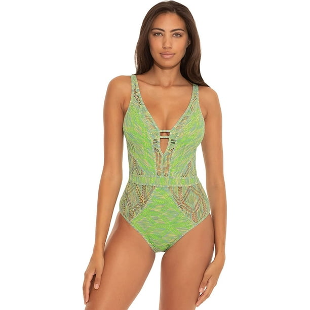 Becca By Rebecca Virtue Womens Mosaics Show Tell Plunge One Piece Swimsuit X Small Kiwi Walmart Com